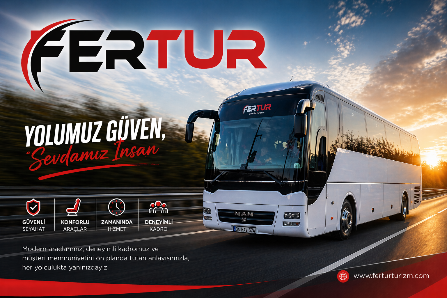 Fertur Turizm teknolojinin getirdiği tüm imkanları kullanıp, özel olarak oluşturulmuş uzman kadrosu ile fabrikalardan, okullara, özel ve kamu kurumlarına kadar pek çok sektörün personel ve öğrenci taşımacılığı hizmetlerini " Güvenli, Dakika, Rahat" anlayışı ile gerçekleştirmektedir. <